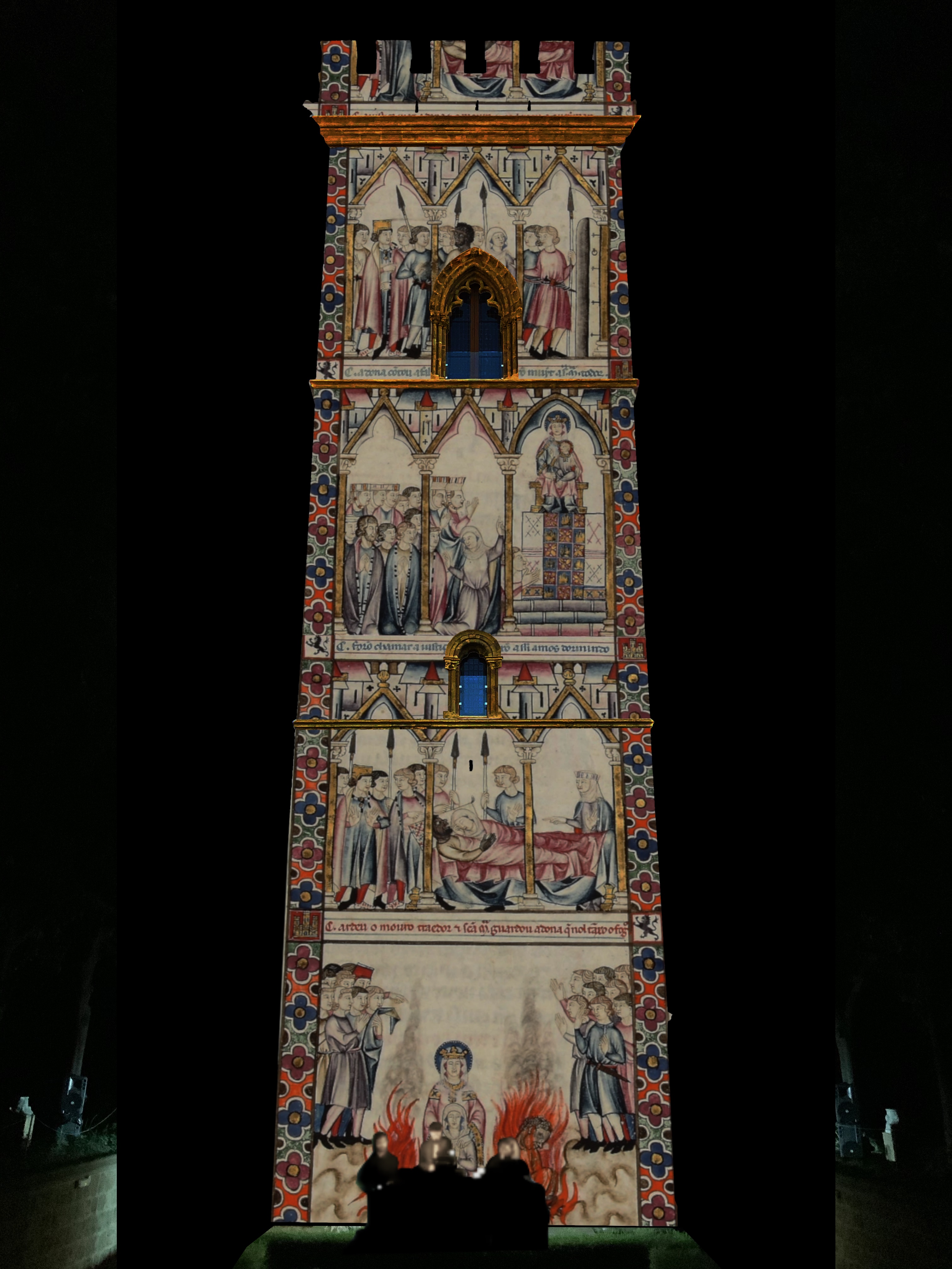 La iniciativa correrará a cargo de Imperdible Artes Escénicas, que utilizará los muros de la torre como lienzos de imágenes ilustrativas de las Cantigas de Santa María, una de las colecciones de canción monofónica más importantes del la literatura medieval occidental escritas en la segunda mitad del siglo XIII y que, aunque existen dudas sobre la autoría directa del Rey Alfonso, no las hay sobre su participación como compositor en algunas de ellas. Así, el evento audiovisual comprende un espectáculo de proyecciones en 3D de iconografía relacionada con el rey sobre la fachada de Don Fadrique, en paralelo a una nueva interpretación musical de las cantigas con elementos electrónicos actuales. De este modo, las flautas, cornetas, añafiles, ajabebas, gaitas, chirimías y vihuelas serán sustituidas por secuenciadores, vientos digitales, percusiones tratadas, sintetizadores de voces, etc. que reforzarán el carácter místico, fantástico y sobrenatural de algunas de las piezas, y convertirán la actividad en una especie de sesión de DJ con dispositivos electrónicos de reproducción y mezcla.