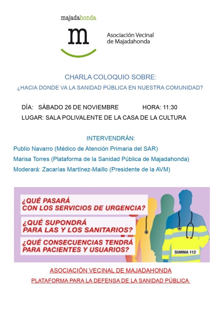 Plataforma por la Sanidad Pública y Asociación Vecinal de Majadahonda se movilizan para informar sobre la estafa de los planes regionales para los servicios de urgencia de los Centros de Salud