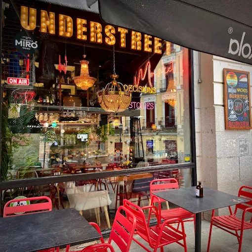 Un lugar donde se cruzan culturas, sabores y estilos. Un espacio abierto a la colaboración con artistas urbanos, donde pueden exponer su arte en absoluta libertad. Cinco restaurantes, un mercado, un barrio (La Latina) un refugió ecléctico y vanguardista donde las ideas cobran vida y los momentos se convierten en recuerdos. Ya sea una cena íntima, una fiesta épica o un evento privado inolvidable, estamos aquí para hacerlo realidad.Understreet Market no es solo un espacio gastronómico; es una experiencia que conecta la cocina global con la creatividad urbana (Street Food – Street Art). Los muros cobran vida con obras que cuentan historias auténticas, fusionando una Galería de Arte Urbano con un mercado. Aquí, cada rincón está diseñado para inspirar y sorprender, fusionando sabores y arte en un ambiente irreverente y único.