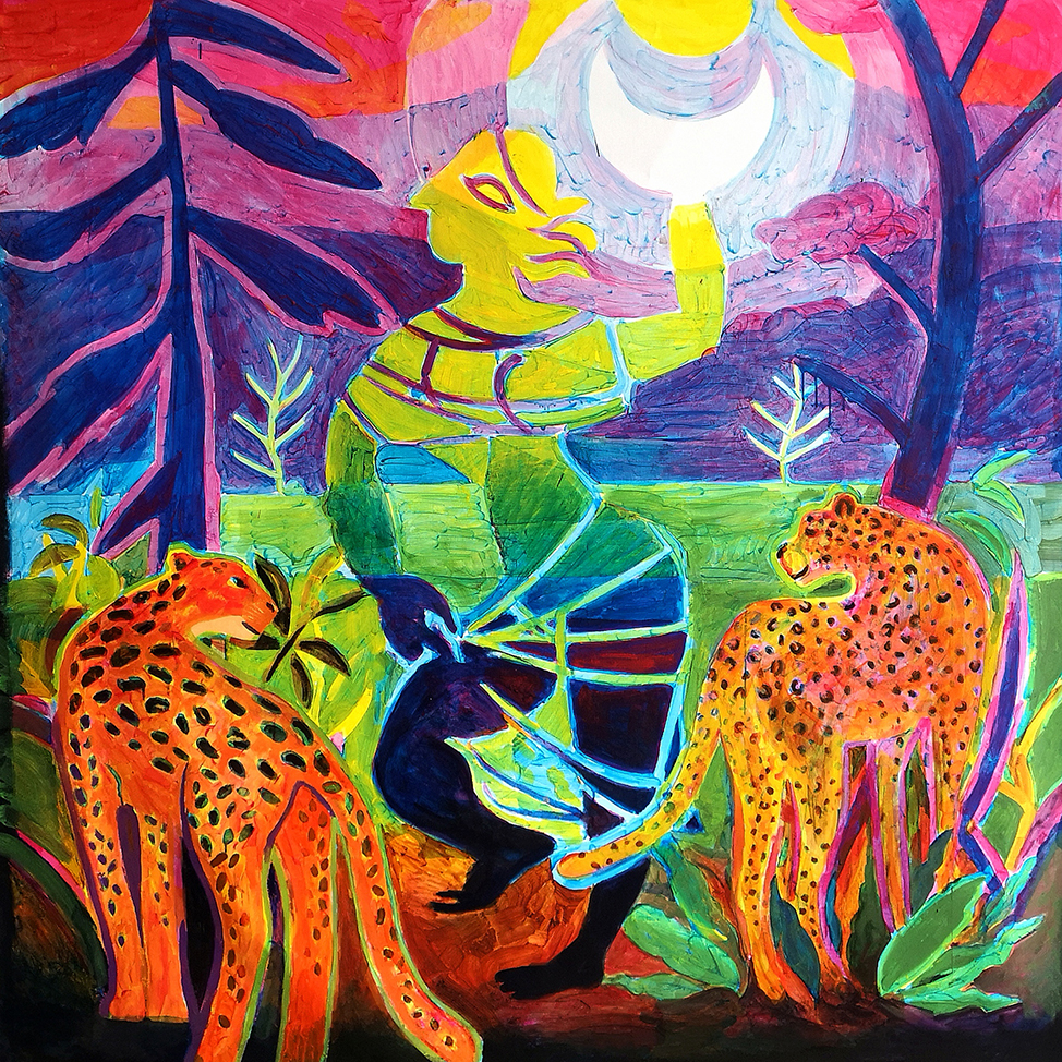 Respondiendo al esquema de la aventura arquetípica –separación, iniciación y retorno–, la muestra supone un recorrido pictórico al más allá en el que el retorno visionario es traído al presente a través de la experiencia del artista, que invoca la emergencia de un rito de transición colectivo. Y es que las 50 obras que la componen –entre las que se encuentran pinturas, obras gráficas y digitales–, compaginan símbolo y alegoría, y llevan al visitante a un paradójico inframundo donde realidad y ficción se han vuelto indistinguibles.