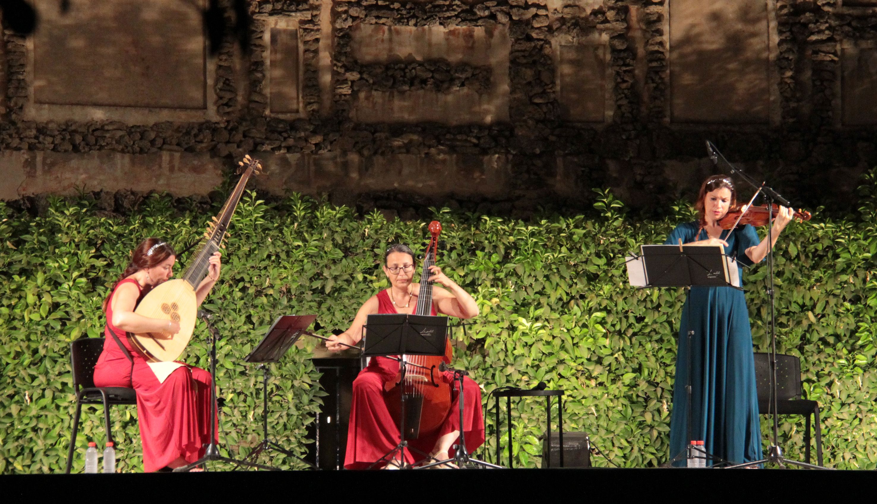 El viernes 12 de agosto actuará el Trío Sarabande, formado por Clare Applewhite (violín), Pedro Romero (viola, violín) y Orna Carmel (violonchelo), que han compartido amistad y escenario junto a orquestas como la Real Orquesta Sinfónica de Sevilla. El grupo nace en 2012 con el deseo de explorar y difundir la música escrita para trío de cuerda, además de adaptar el repertorio necesario para esta formación. Su repertorio abarca música desde el barroco hasta el siglo XXI. Presentarán el programa «Tríos de Cuerda de la Escuela de Viena», y abordarán composiciones de L.V. Beethoven, María Theresia von Paradis y Franz Schubert.