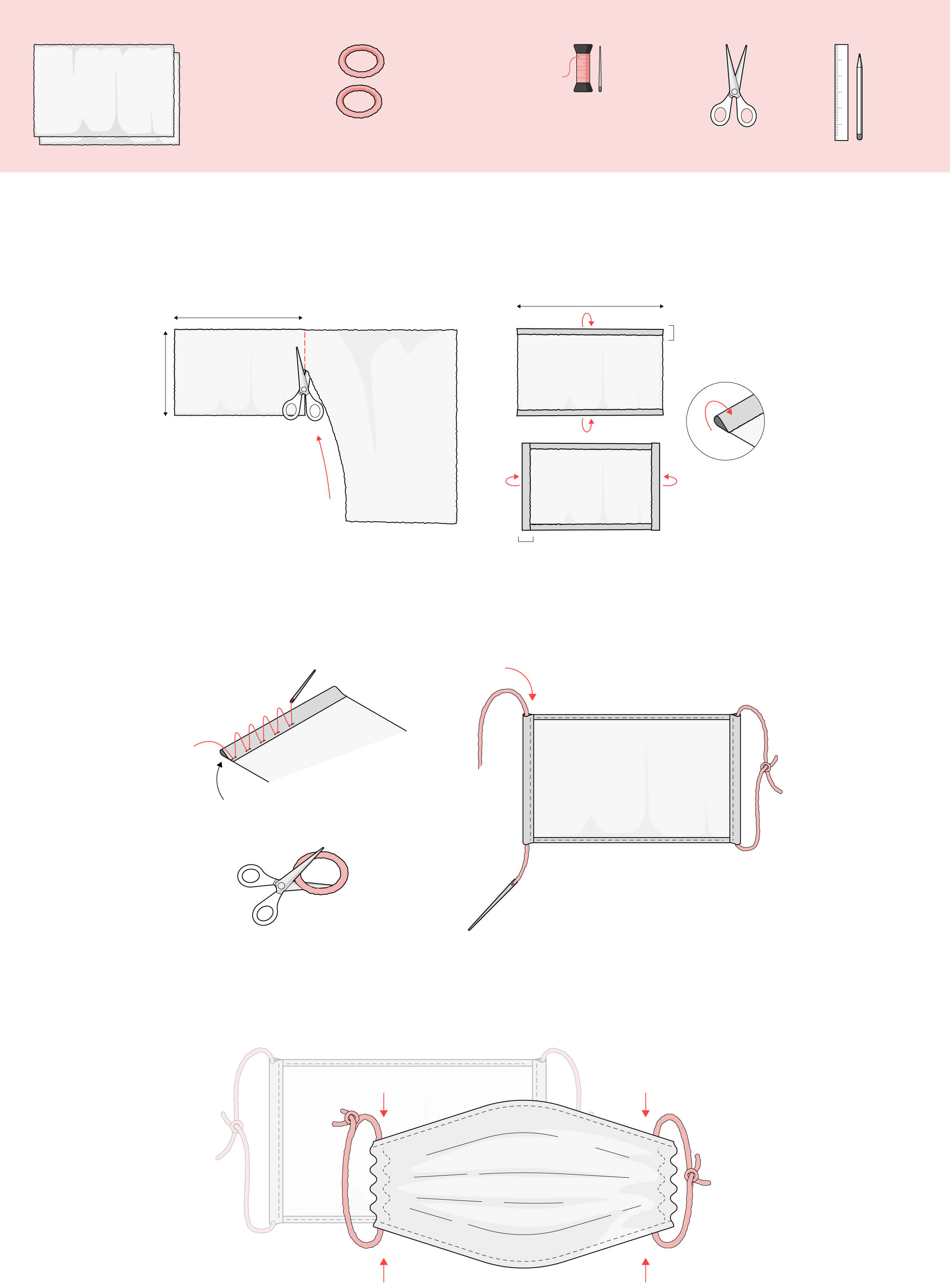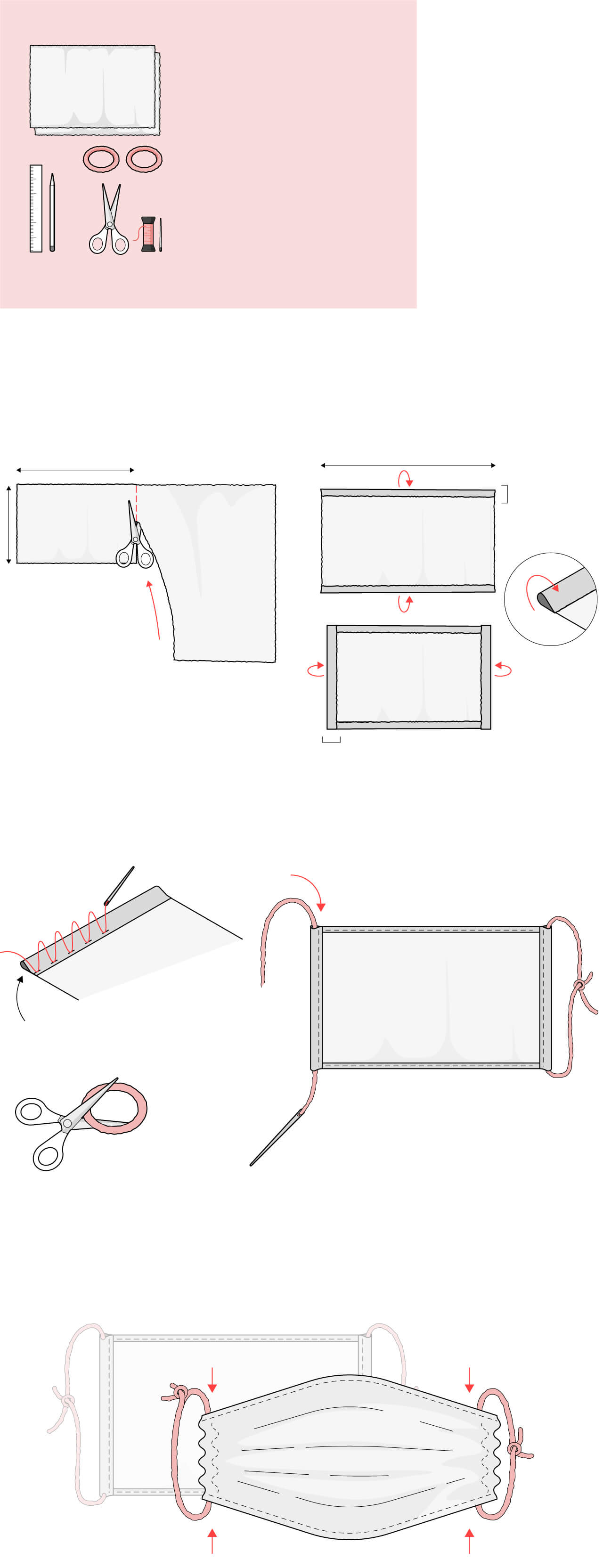 Con dos trozos de tela de algodón, dos tiras elásticas y conocimientos básicos de costura es posible fabricar una mascarilla.