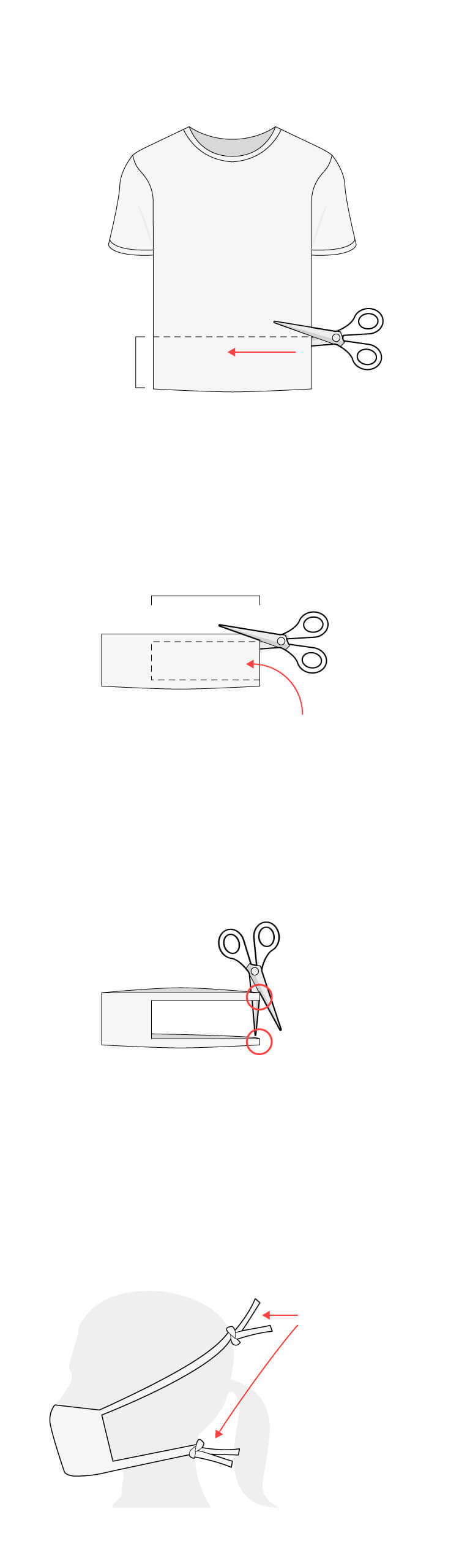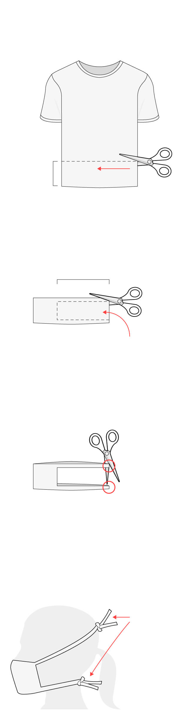 Si coser no es lo suyo, puede fabricar también una mascarilla con una camiseta vieja (lo idea son dos capas de tela). Estos son los pasos que debe seguir: