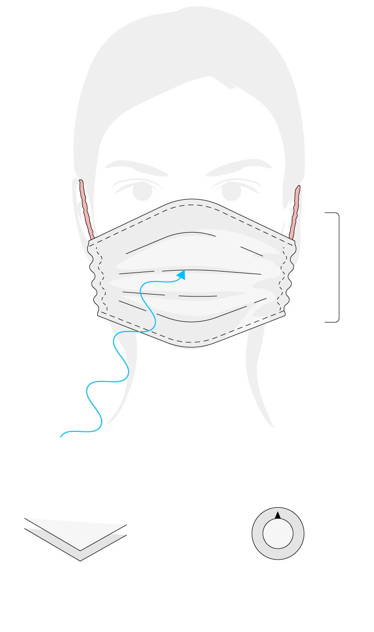Ate las cuerdas inferiores en el cuello y las superiores en la cabeza de manera que la mascarilla quede ajustada a su rostro.