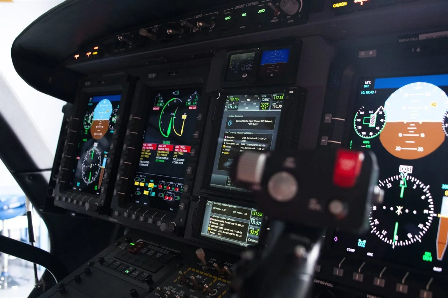 Cockpit certificado FNPT II del Bell 429, helicóptero bimotor de alto rendimiento utilizado en operaciones VIP, HEMS y servicios especiales. Aviónica Garmin G1000H y sistemas avanzados de vuelo.Diseñado para pilotos profesionales y avanzados que buscan dominar una aeronave de alta exigencia con procedimientos complejos y vuelo de precisión.